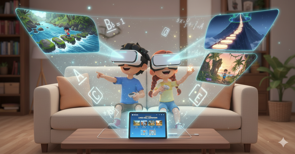 “Ikuti petualangan Linggo untuk menyelamatkan Mala dari Penjaga Pengetahuan. Jawab tantangan matematika, kumpulkan badge, dan taklukkan dunia VR penuh misteri!”